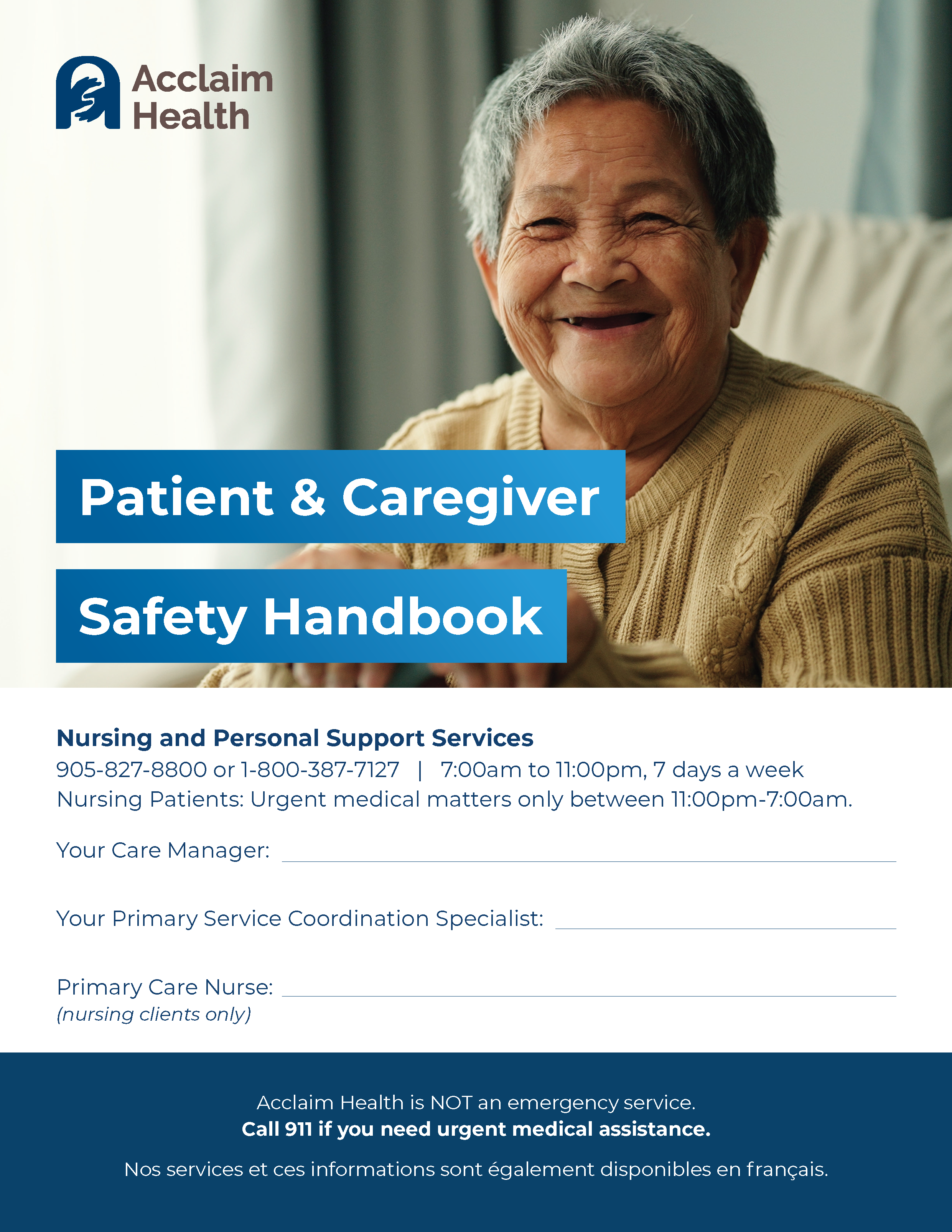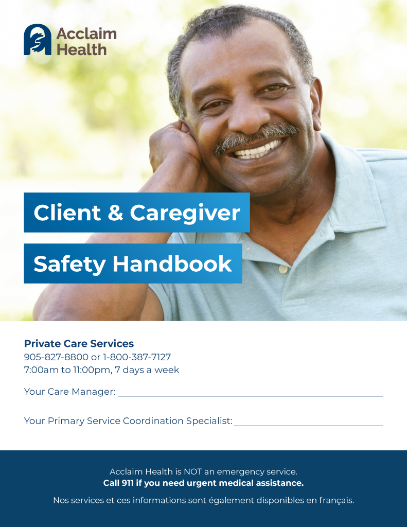 The Safety Handbook provides essential information about your care team, safety protocols, and what you can expect from Acclaim Health’s services. Inside, you will find practical resources on topics such as medication safety, fall prevention, and infection control to help maintain a safe environment for you and your care providers. You should keep this guide accessible to quickly reference important contact numbers, emergency plans, and the steps for providing feedback or voicing concerns.