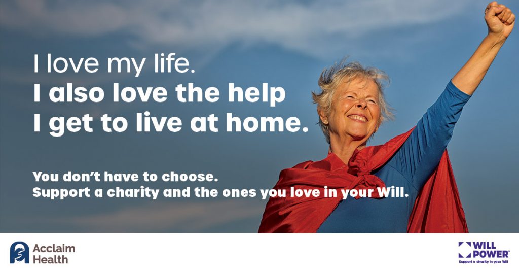 Good news: it’s simple. You can bequest a fixed amount or a percentage of your estate to Acclaim Health or another registered charity by contacting your lawyer. Your lawyer can make the necessary changes in your will – just be sure to use the legal name and address of the registered charity. Your estate will receive a tax receipt for the amount of the donation.